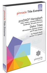 Use Pinnacle Title Extreme to add broadcast-quality titles and text effects to your next video project. Title Extreme comes with the ProDAD Heroglyph plug-in for Studio version 11 and 30 professionally designed vector-graphic title templates. nt compatible with SD and HD ProDAD Heroglyph for Studio enables you to create eye-catching, professional-quality titles. Create your own titles and text effects such as rolling credits, subtitles, animated handwriting, and motion text. Inspired by today's most popular TV shows and movies, the titles combine beautiful typography with rich textures, images, animations and objects. The high-resolution titles are available in full-screen and lower-third formats, and are fully compatible with SD and HD (widescreen) video projects.